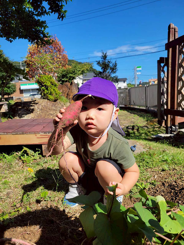 秋になりお散歩や外遊びができるようになり、お友達と手をつないでにこにこで出発です。